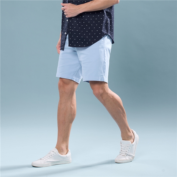 男裝 尼龍素面鬆緊腰頭休閒短褲 -卡其色