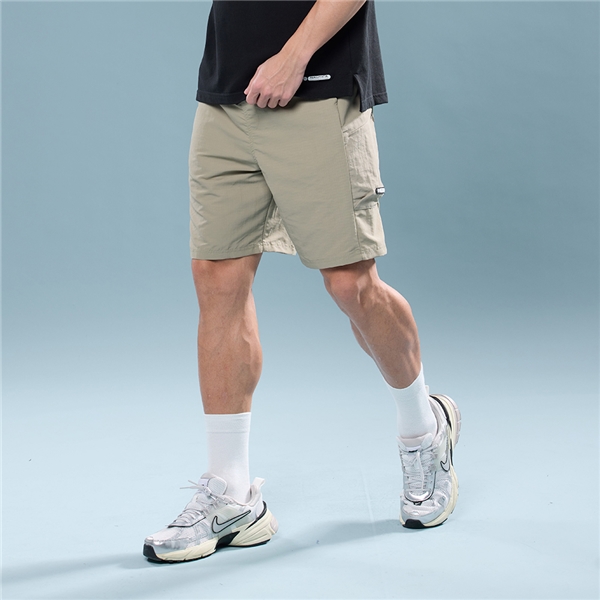 男裝 尼龍素面鬆緊腰頭休閒短褲 -卡其色