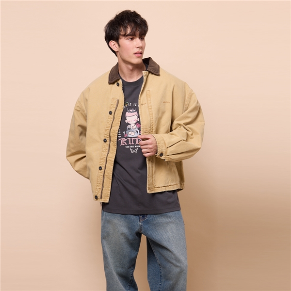 鋪棉復古落肩夾克外套-卡其色