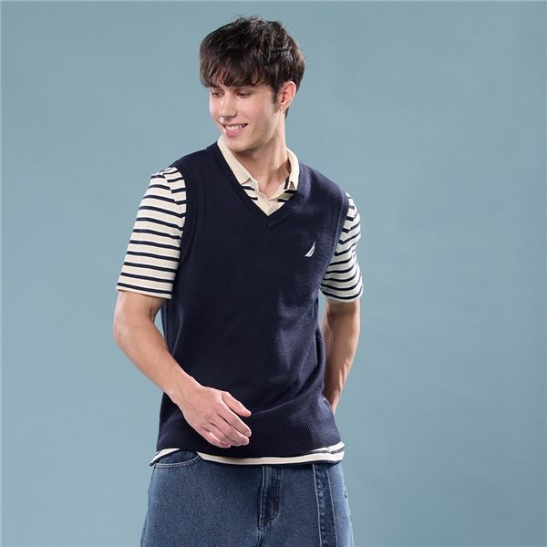 男裝 工裝風多口袋撞色尼龍背心 -藍色
