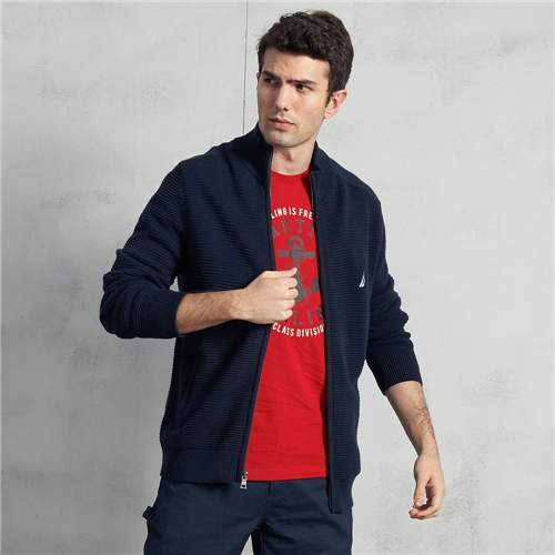 撞色立領設計穿著更保暖 針織立體面料增添設計感 簡單搭配襯衫穿出率性魅力的氛圍