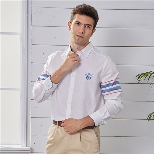 男裝休閒造型長袖襯衫-白