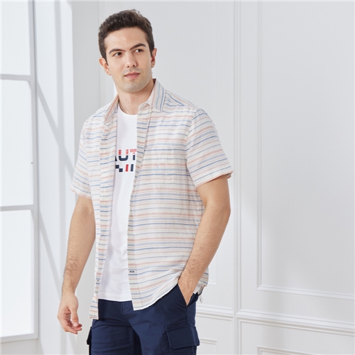 經典條紋加上粉嫩配色,時尚有形 經水洗加工讓麻料材質更加柔軟 混和天然亞麻,穿著吸汗透氣