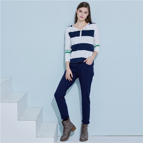 女裝 鬆緊腰頭壓線長褲-藍色