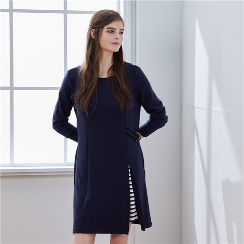 女裝 拉鍊式門襟抽繩連身裙-藍色