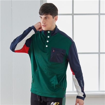 男裝 COMPETITION立領拼接長袖T恤-綠