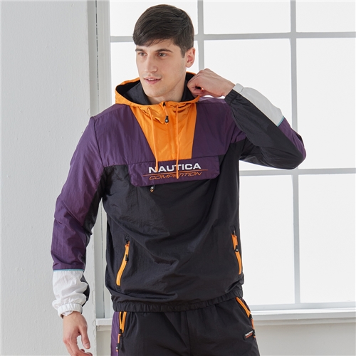 男裝 COMPETITION潮流拼接長袖連帽衝鋒衣-紫