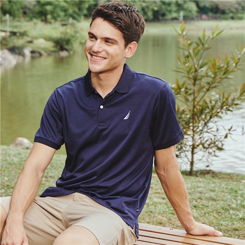男裝 低調LOGO壓紋短袖POLO衫-深藍