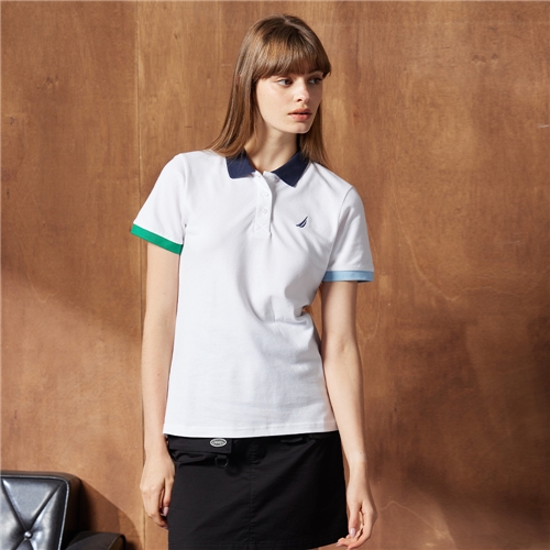 Nautica 男裝 COMPETITION撞色領圍短袖POLO衫-白色