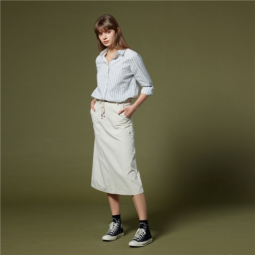腰部配有袢帶抽繩,展現多樣穿搭 雙口袋設計,增添實用性 A字裙擺設計,遮肉更顯瘦