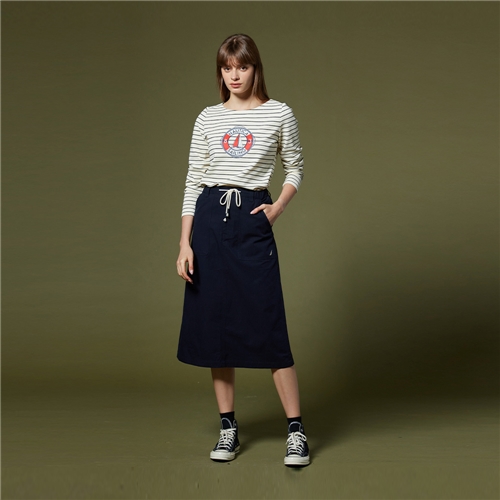女裝 素面抽繩半身裙-深藍