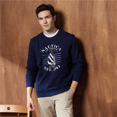 版型設計簡約俐落,修身時尚 品牌標誌帆船印花,展現品牌精神 下擺領口螺紋收口,不易變形