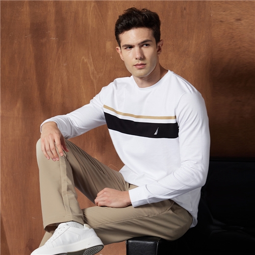 跳色條紋拼接設計,百搭有型 胸口精緻品牌LOGO刺繡,展現品牌精神 100%純棉材質,穿著舒適度佳 版型設計簡約俐落,修身時尚
