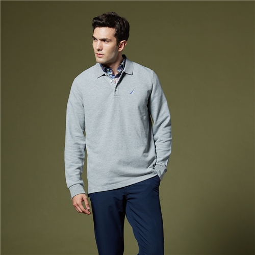 男裝 品牌LOGO簡約刺繡長袖POLO衫-灰