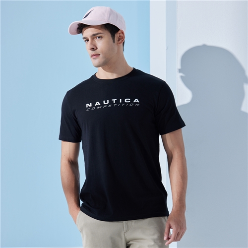 Nautica 男裝 COMPETITION品牌LOGO帆船圖騰造型短袖T恤-黑色
