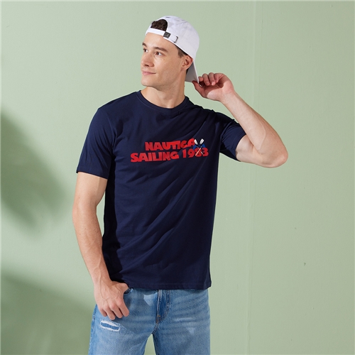男裝 品牌LOGO簡約短袖T恤-深藍