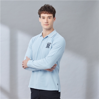 男裝 美式徽章刺繡長袖POLO衫-淺藍色