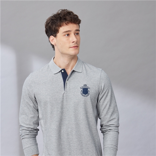 男裝 抗菌涼感徽章刺繡長袖POLO衫-灰色