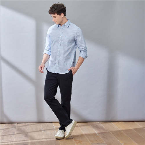 男裝 跳色拼接純棉長袖POLO衫-藍色