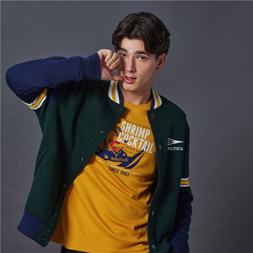 男裝 溫暖禦寒內刷毛棒球外套-綠